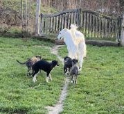23.02.2025: Heute hatten wir ( Knjaginja, Beryll, Corund und ich ) einen schönen Trainingstag in Hassia. Wir waren dort mit Britta und Lea verabredet, und so liefen Beryll und Kedre, Benja und Knjaginja zusammen, die beiden Knipse liefen noch einmal alleine, eine ganz kurze Distanz. Sie durften sich einfach mal austoben, und sollen wissen, daß der "Puschel" ein schönes "Spielzeug" ist. Alle haben es toll gemacht. Da wir so frühlinghaftes Wetter hatten, saßen wir draußen! Es gab viel zu erzählen, und auch viel zum Lachen! Anke hatte so leckeren Nudelsalat gemacht, mh! Aber auch die zu Hause gebliebenen Hunde bei uns hatten es gut: Knochen gab es, und dann zur Belohnung Hähnchenfleisch.