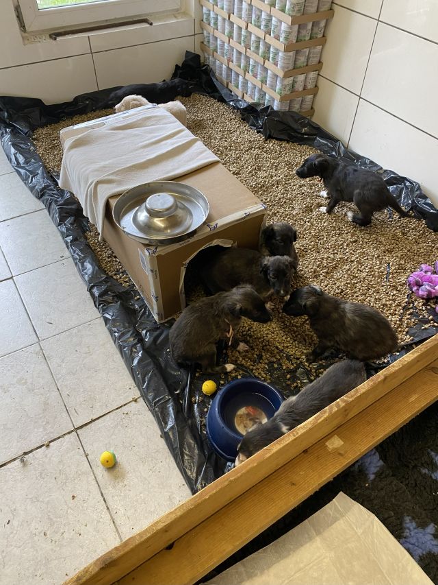 01.12.2025: Der letzte Monat im Jahr! Unsere Welpen entwickeln sich prächtig! Das "in-dor-Klo" wird gut genutzt, auch genießen sie es, draußen rum zu toben! ich bin so froh, daß das Wetter es zuläßt, und es nicht so kalt ist! Wir machen morgen neue Fotos, Achim ist ja jetzt da, dann soll es einfacher werden. Die Kleinen sind ja wie ein Sack Flöhe, denkt man, das würde ein schönes Bild, sind sie schon weg! Einfach schwer, sie alleine zu fotografieren!
