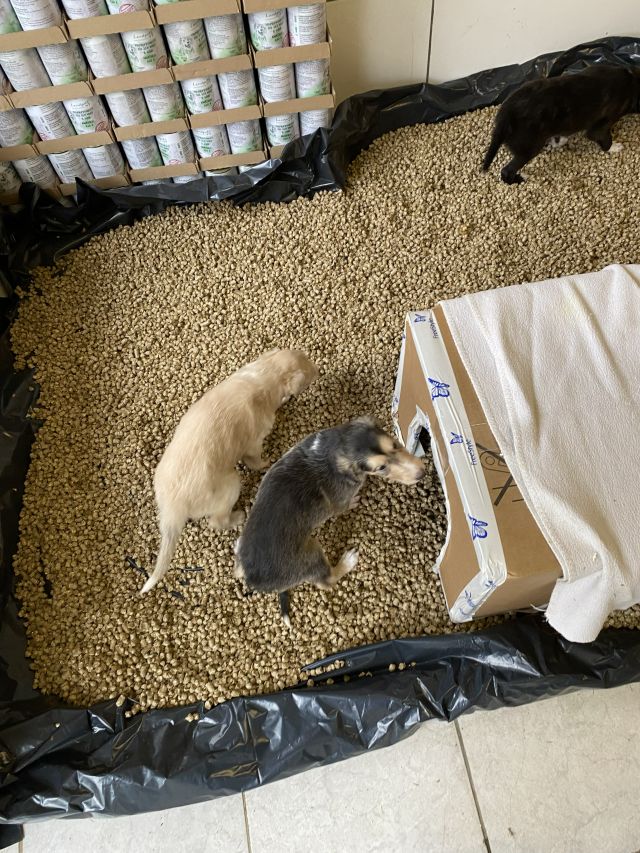 01.11.2025: Wie jeden Morgen gilt mein 1. Blick den Welpen! Und da wird als erstes die Wurfkiste neu bestückt. Während dessen macht Mama Nitro draußen alles, was sie muß, um dann wieder ein zu kommen, um zu essen. Danach trinken die Welpen die Milchbar leer.