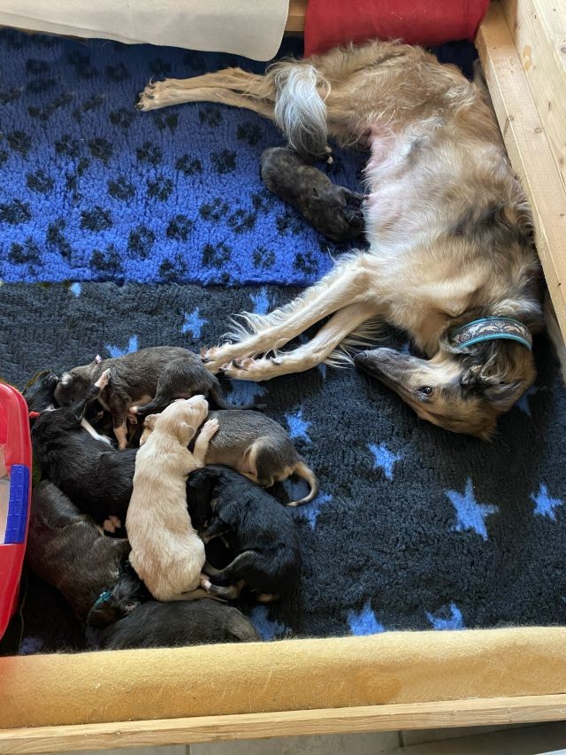 Großen, einer im Welpenzimmer bei den Kleinen. Keine Barsois sollen