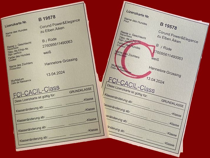 Corund Power&Elegance zu Elben Äiken : V1, VDH, CAC, bester Rüde, Landessieger Weser-Ems 2025, BOS Dana Power&Elegance zu Elben Äiken: V1, VDH Bat Whispers zu Elben Äiken: V1, VDH, CAC Ein schönes nachträgliches Geburtstagsgeschenk. Ganz lieben Dank an Richter Herrn Fricke für seine große Wertschätzung unserer Hunde! Und als ich zu Hause in den Briefkasten schaute, da waren auch schon Corunds FCI-Lizenzkarten da, Danke, Herr Rischer, für die schnelle Bearbeitung!
