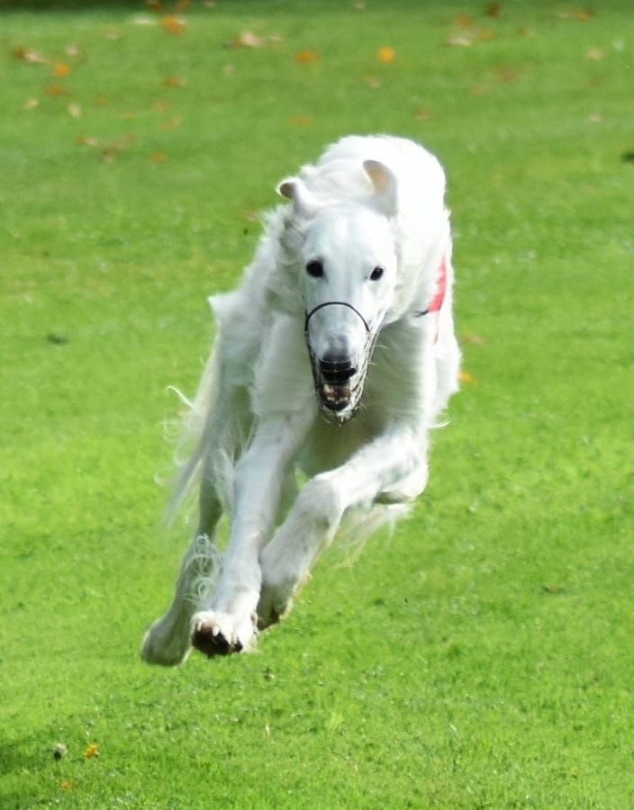 Gestern und heute waren Beryll und ich in Gelsenkirchen, wo die diesjährige Renn-Weltmeisterschaft ausgetragen wird. Wir hatten schöne Vorläufe ( Beryll: lief unter blau und erreichte Platz 2 ) und ein ganz tolles 6.-Feld im Finale! Alle Barsois haben es sehr gut gemacht und sind auch alle heile und ohne Komplikationen ins Ziel gekommen. Nicht nur, daß Beryll auf`s "Treppchen" kam,