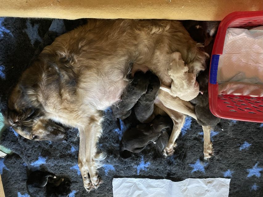 02.11.2025: Ich komme ins Welpenzimmer und denke: Wo sind die Welpen? Das sind viel zu wenig!!! Wo ist der Rest???