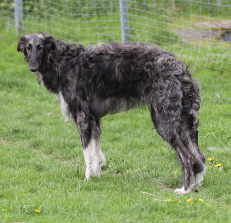 ![]() Das ist ihr Erwachsenenhaarkleid, hier 12 Monate alt. So erhält man ungefähr eine Vorstellung davon, wie die Welpen sich später präsentieren können. Und jetzt noch einmal zu Nathalie, hier 2 Fotos im Alter von 4 1/2 und 12 Monaten.