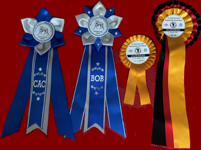 Oldenburg, 01.08.2025 Richter: Herr Tapion Eerda/FL Corund in der Zwischenklasseklasse: SG 1. ALLE Rüden, egal in welcher Klasse, bekamen nur SGs! Oldenburg, 02.08.2025 Richter: Herr John Muldoon/IE Corund in der Zwischenklasseklasse: V1, VDH, CAC, BR, BOB. |