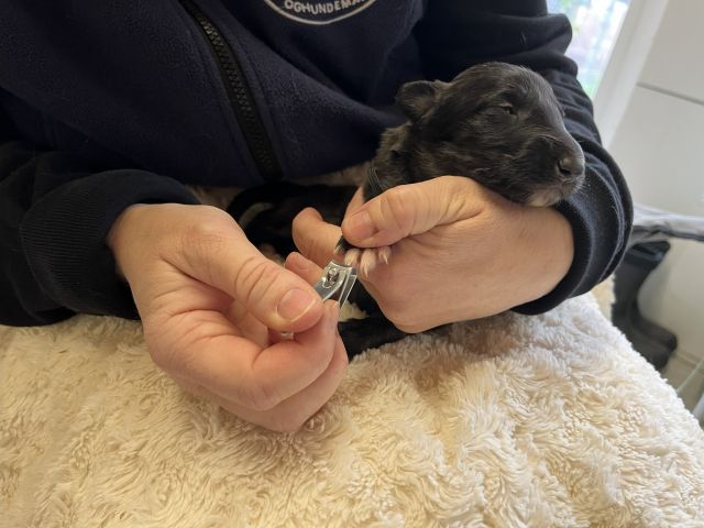 29.10.2025: Wenn Welpen da sind, gibt es nicht mehr viel anderes. Und so war heute das erste "Krallenschneiden" angesagt. Mama Nitro schien das anfangs nicht geheuer, doch wir rechnen fest damit, daß sie es uns danken wird!
