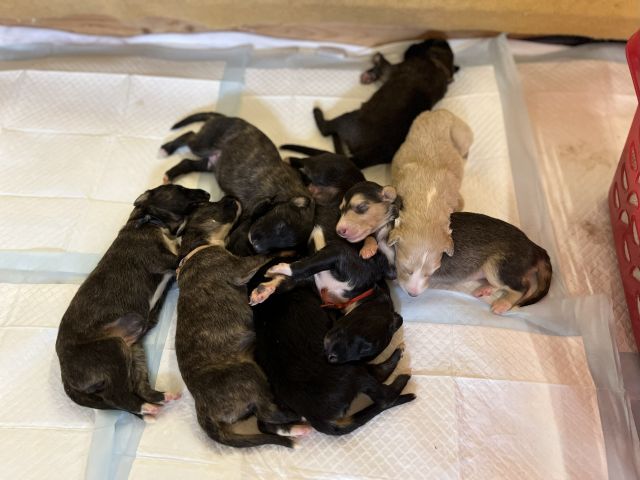 30.10.2025: Es ist schon richtig viel los in der Wurfkiste! Die 8 kleinen "Blinzler" tapsen schon ganz eifrig hin und her! Es ist eine Freude, ihnen zuzusehen. Sie nehmen gut zu, also ständig "Wäsche wechseln"!