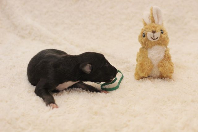 Nitro hat alles inspiziert und für gut befunden. Noch wohnt sie ja nicht im Welpenzimmer, doch gut, daß sie sich da wohl fühlt.
