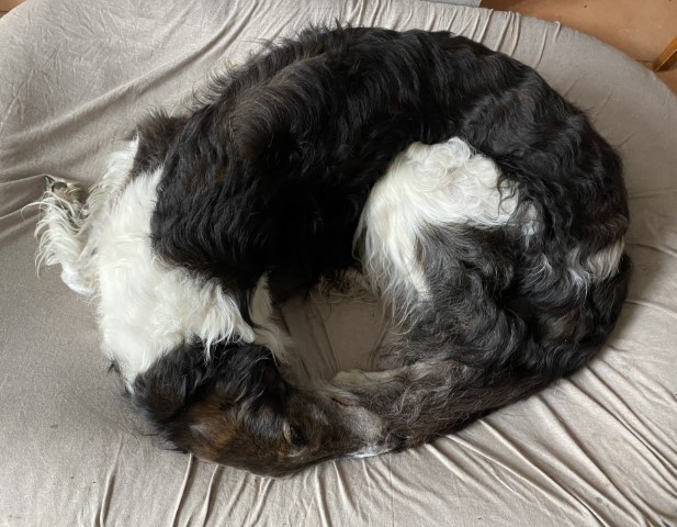 Wohl dem, der keinen weißen oder hellen Hund hat, bei den dunklen fällt es nicht so auf!