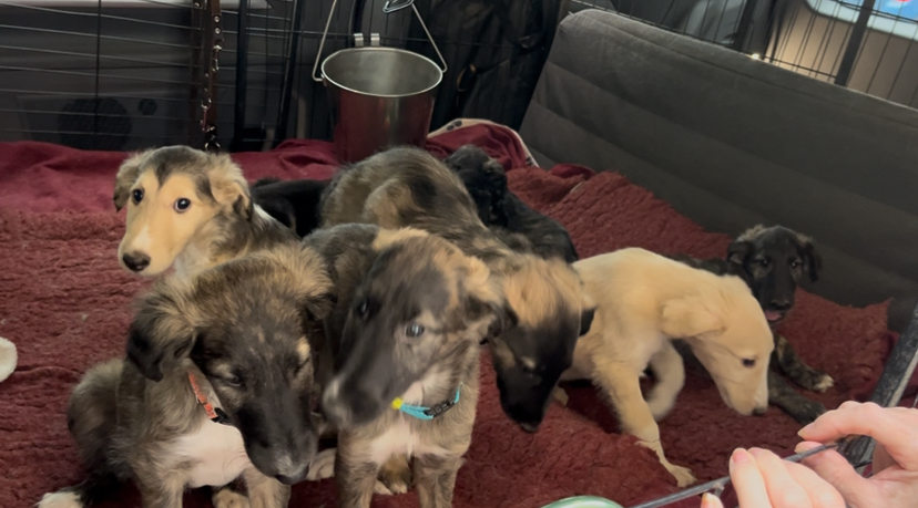 Welpenzimmer bei den Kleinen. Keine Barsois sollen alleine sein und Angst vor dem