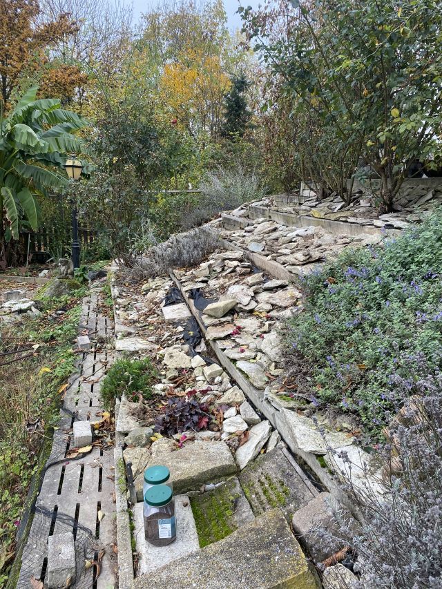 Das Wetter läßt endlich wieder Gartenarbeit zu! Also ran an den Feind. Ich habe schon ein bißchen Rosen geschnitten, und wir haben die Anemonen aus dem Teichhang entfernt! Oh weh, jetzt sieht es da aus, als hätte eine Bombe eingeschlagen! Eine Reihe habe ich schon wieder gerichtet, später geht es weiter! Die Anemonen haben sich derart vermehrt, das wurde zu viel. Jetzt dürfen sie sich gerne am Eichenhang vermehren.