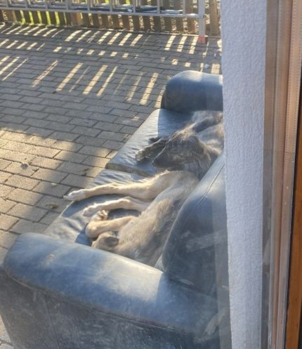 Auch Nitro bekommt ihren Knochen. Und nach dem Schmaus sitzen die Kleinen auf dem Sofa in der Sonne, zu süß!