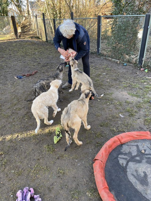 Achim verteilt Rindersuppenstücke. Sowohl an die Großen, als auch an die Kleinen! Ei, da war wieder was los!