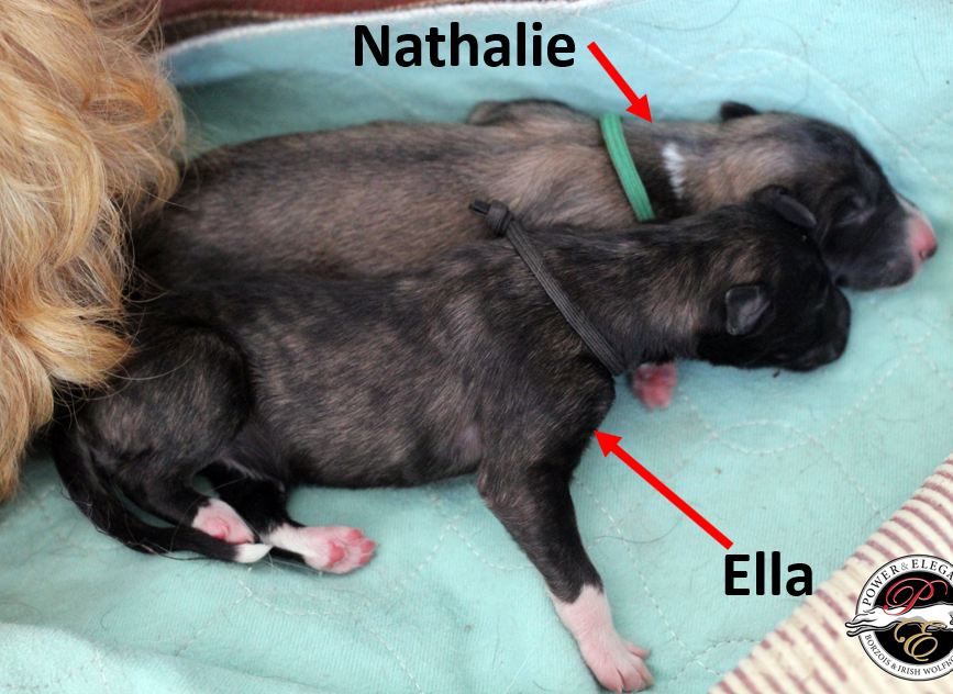 Die Mädchen: Eylin, Marlene, Nosi und Elba und umgekehrt. Marlene und Nosi sind fiktive Namen und leiten sich von der Farbe des Halsbands ab, bzw Nosi`s weiße Nasenblesse. Sie suchen noch ihre richtigen Namen.